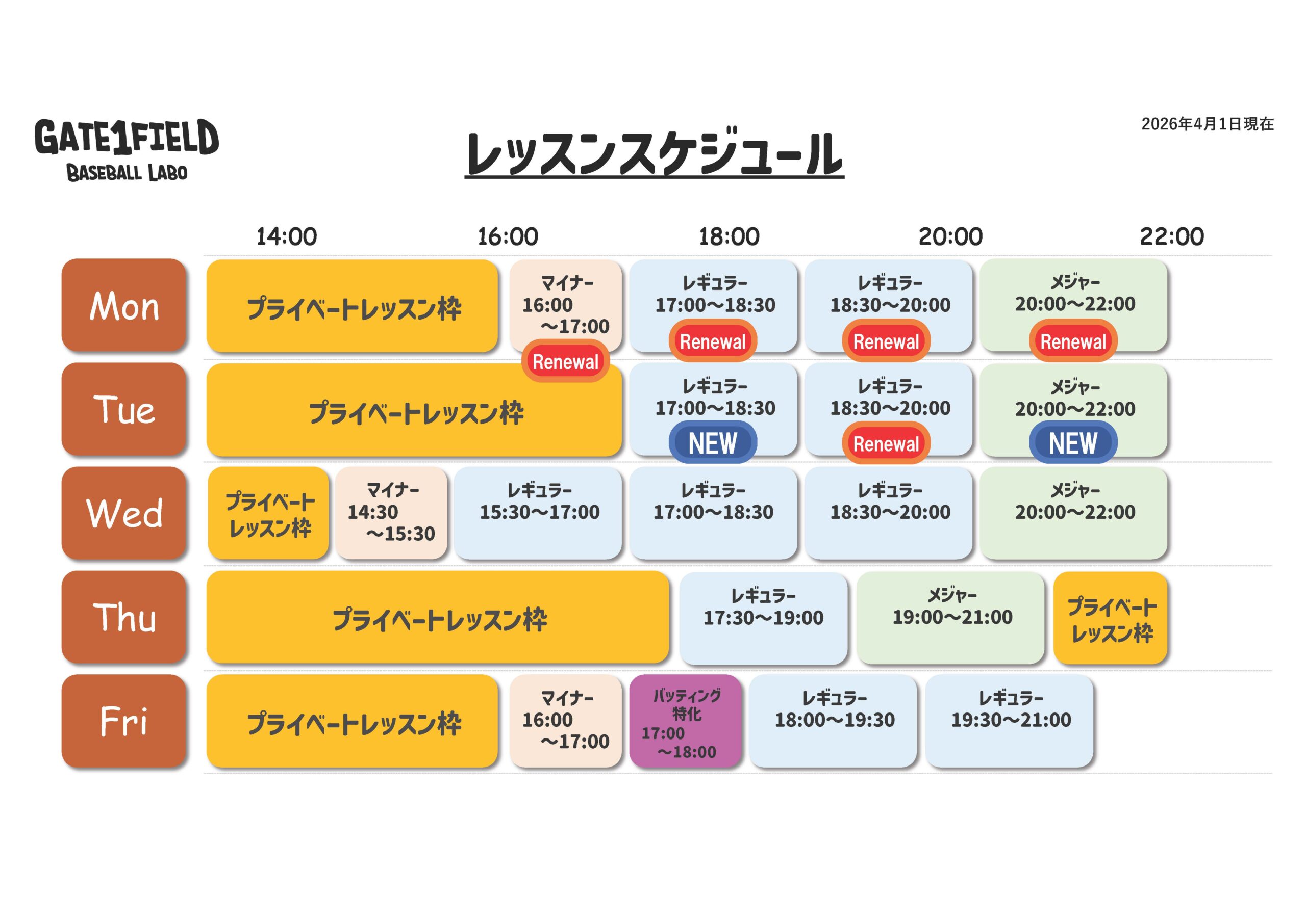2026年4月からのレッスン時間の変更とメジャークラスの新設を行うこととなりましたので、以下のとおりお知らせいたします。